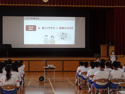 全校生徒を対象にスマホ教室がありました。情報技術の上手な活用とリスクについて教えていただきました。