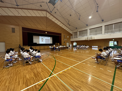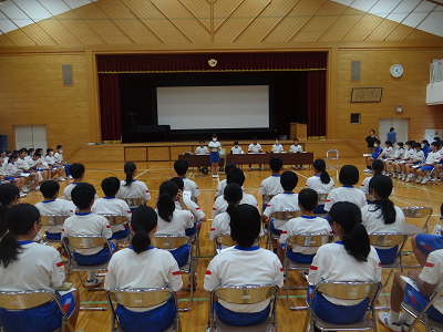 本日、生徒総会がありました。各委員会の反省や表彰、夏休みの過ごし方に関するクイズなどを行いました。