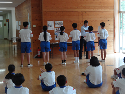 今日は、全校練習で開会式、閉会式の流れやラジオ体操を行いました。